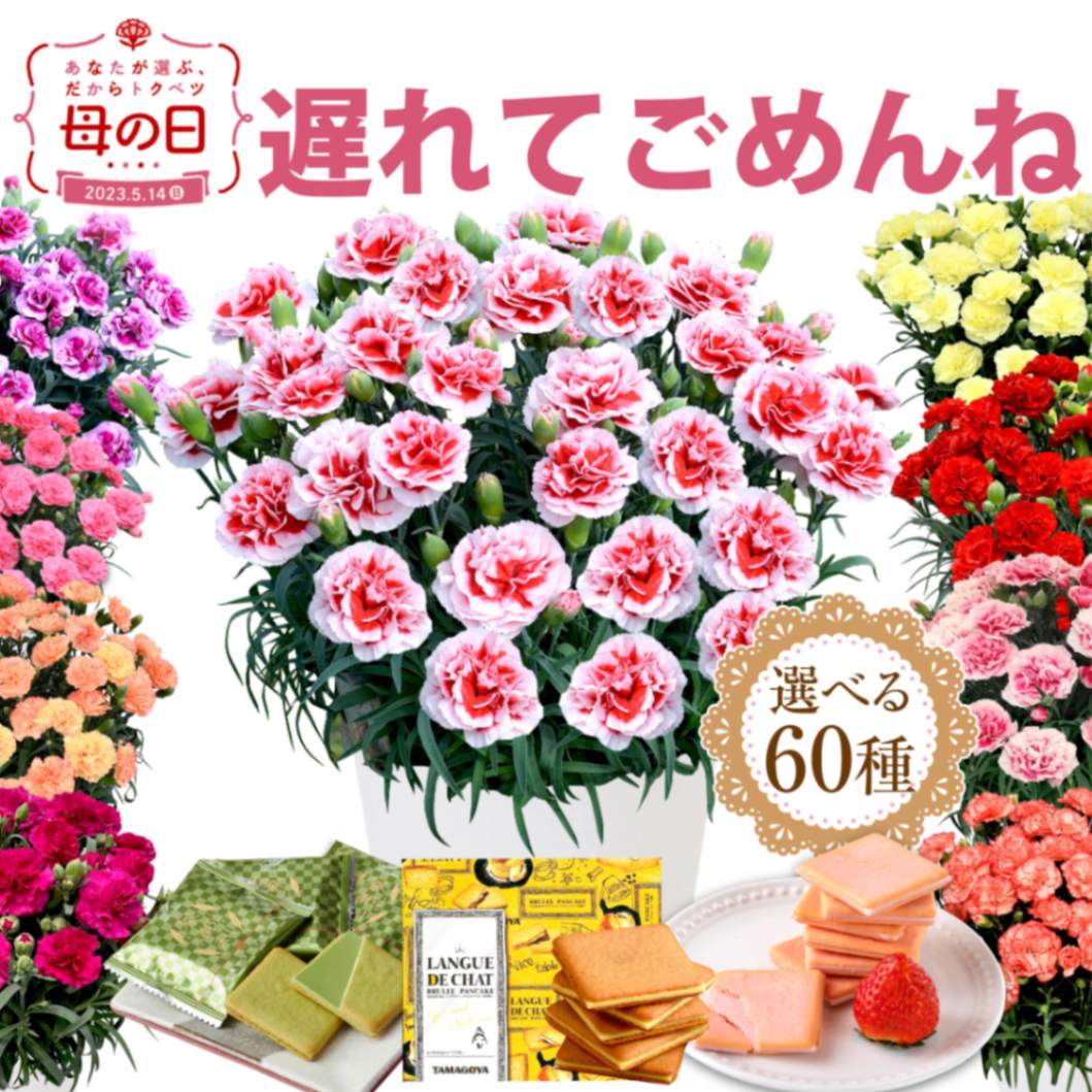 2024年完売しました ◎ カーネーション 5号 鉢花 選べるスイーツ お菓子 セット ラングドシャ 静岡 【伊豆・村の駅】